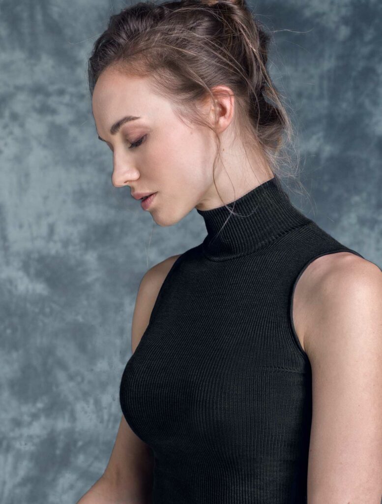 Sleeveless turtleneck sweater Irene in ribbed cashmere modal